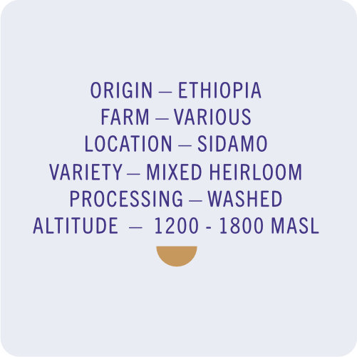Wielu farmerów, jeden profil. Kawa pochodzi od wielu drobnych producentów ze stacji przetwarzania w regionie Sidamo – model typowy dla Etiopii, gdzie małe rodzinne uprawy dostarczają owoce do wspólnych washing stations. Stacje te odpowiadają za jednorodność obróbki, dzięki czemu mimo różnorodności źródeł kawa zachowuje spójny, rozpoznawalny charakter.